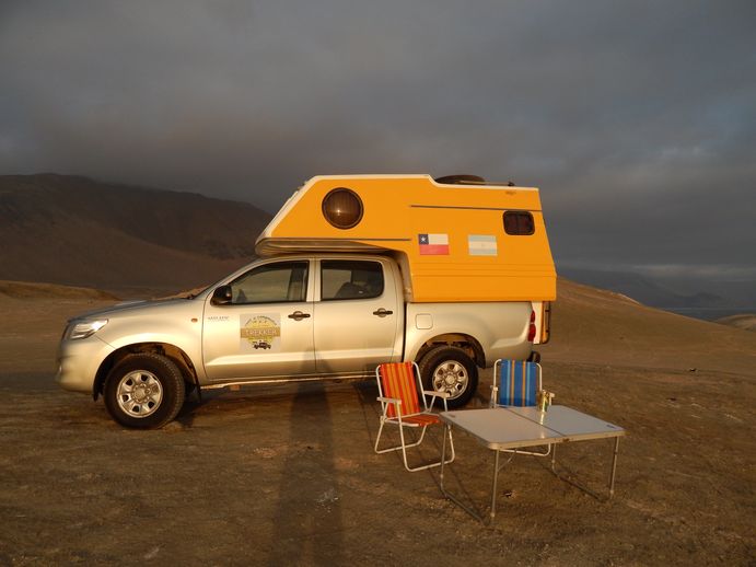 Für 18 Tage haben wir einen Toyota Hilux mit Wohnkabine gemietet und wollen damit von Antofagasta in Chile über die Anden nach Argentinien und schließlich nach Florianopolis in Brasilien fahren. Also eine „Kontinental-Durchquerung“.
