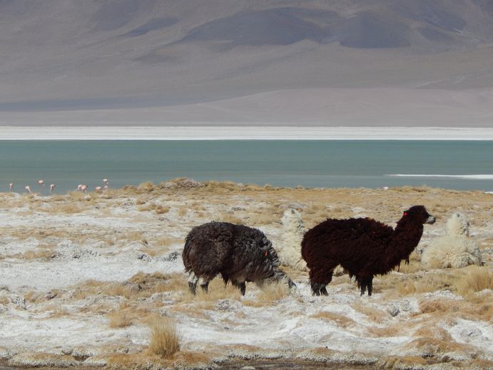 Am See Flamingos, Nandus, Lamas und allerlei Vögel. Richtig schön hier, ein großartiger Schlafplatz, wenn man Luft bekommen würde. Da wir in keiner Weise an Höhe akklimatisiert sind, kommt das nicht in Frage, da wäre Höhenkrankheit vorprogrammiert. Aber es ist ein gutes Akklimatisationstraining. Wir fahren am See entlang über Stock und Stein und über zum Teil wirklich miserable Piste, aber dafür haben wir schließlich 4x4.