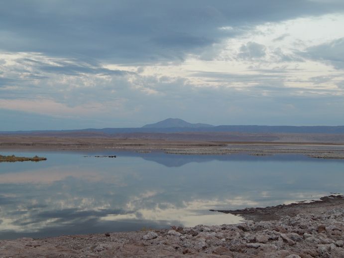 Dann machen wir uns auf den Weg zur Laguna de Cejar in der Hoffnung, dort einen ruhigen Schlafplatz zu finden. Pustekuchen. Dort stehen ungefähr weitere 10 Touribusse, die insgesamt mindestens 150 Touris ausgespuckt haben um 2 ziemlich kleine Salzsee-Pfützen zu bestaunen. Kostet natürlich Eintritt. Ist auch ok. Schlafen darf man hier aber nicht, meint die Försterin. Schlafen können wir an der 15km entfernten Laguna Tebinquiche, sagt sie uns. Da die Piste dorthin zunächst einsam ist, schöpfen wir Hoffnung auf etwas Abgeschiedenheit. Und schon wieder nichts...12 Touribusse bevölkern eine kleine Landzunge, vor der das übliche Eintritts-Häuschen steht.