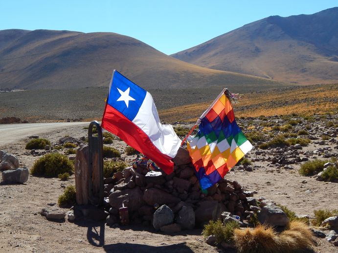 Die Grenze ist bald erreicht und wir stellen zu unserer Erleichterung fest, dass hier tatsächlich alle Grenzformalitäten erledigt werden. Man schickt uns zwar erst auf die verkehrte Seite (Einreise Chile aus Argentinien), nach kurzem hin und her landen wir dann aber auf der richtigen Seite. Alle Formalitäten werden in einem Gebäude an 5 nebeneinander angereihten Fensterchen einfach nacheinander weg erledigt, man bekommt einen Laufzettel und das Ganze ist recht zügig und unkompliziert erledigt. Wir werfen einfach immer unsere kompletten Papiere in die Fensterchen, die dahinter sitzende Person sucht sich das Beste raus, stempelt es ab und reicht es uns zurück. An manchen Fensterchen rückt die Person einfach mit weiter und den argentinischen Zoll stempelt der chilenische Grenzpolizist ab....Wer halt gerade Zeit hat. Wie gesagt, ist unkompliziert...