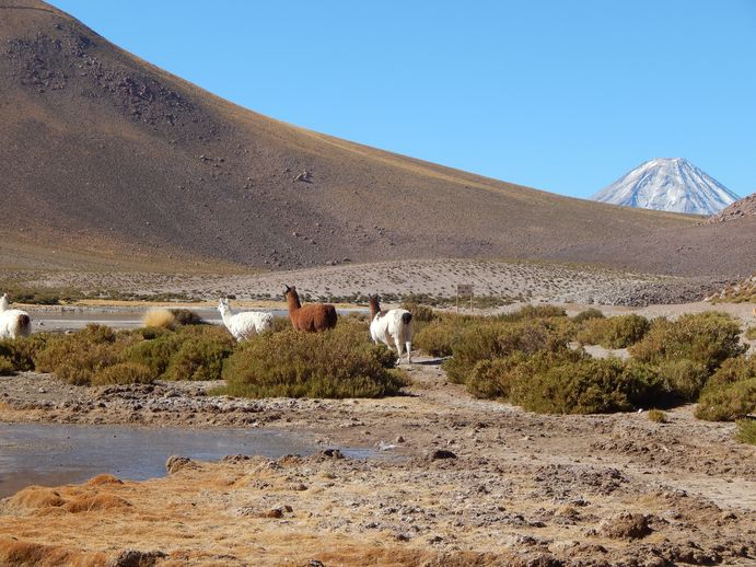 In der Ferne die grau-weißen Vulkane, aus einem dampft es schwefelig, zum Teil entlang des RioGrande, vorbei an Salzseen mit Lamas und allerlei Vögeln schraubt sich die Piste nach oben.