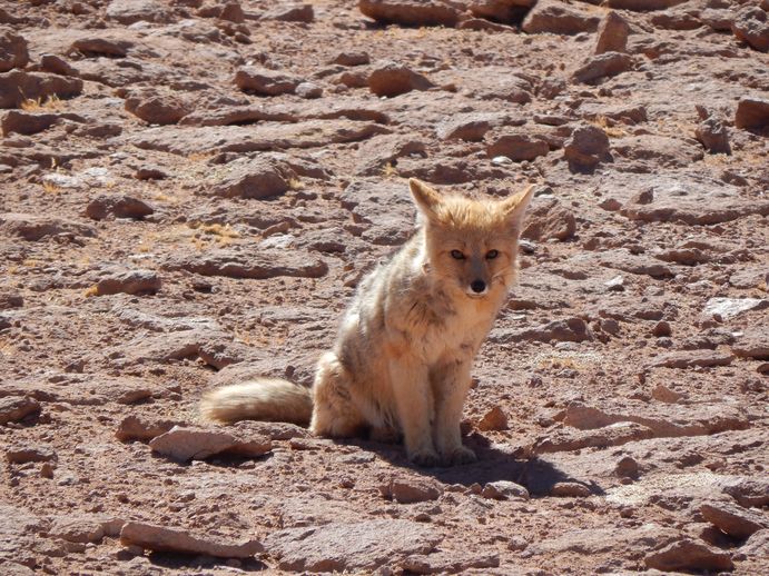 Ein Andenschakal wundert sich über uns und unser Auto...