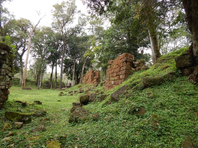 Am nächsten Morgen kommen wir auch erst spät bei Frank los, es gibt halt viel zu erzählen. Um 10.00 Uhr machen wir uns auf den Weg. Wir wollen uns die vom Urwald überwucherten Ruinen der Jesuitenmissonen ansehen (Unesco Weltkulturerbe). Zuerst gehts nach Santa Ana, dort gibt es auch wohl eher weniger sehenswerte Ruinen, die lassen wir aus. Zu besichtigen gibt es aber das 2010 erbaute riesige Kreuz von Santa Ana.