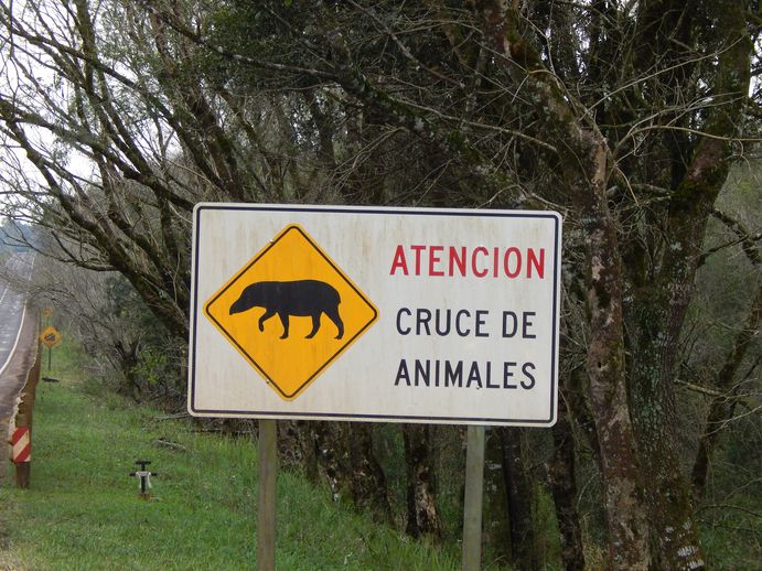 Dort ist auch der Eingang zum Park. Eine Bude und eine Schranke über die Straße. Die Bude natürlich unbesetzt und geschlossen. Es ist Nebensaison und noch ziemlich früh am Tage, da lohnt es sich für die Parkwächter offenbar noch nicht, die Pesos von Touris einzusammeln. Die Schranke ist zum Glück nicht abgeschlossen, also öffne ich sie. Jochen zögert...einfach so? Aber das geht doch nicht - denkt der korrekte Europäer. Doch das geht, wir latschen doch nicht die 5km zu Fuß!