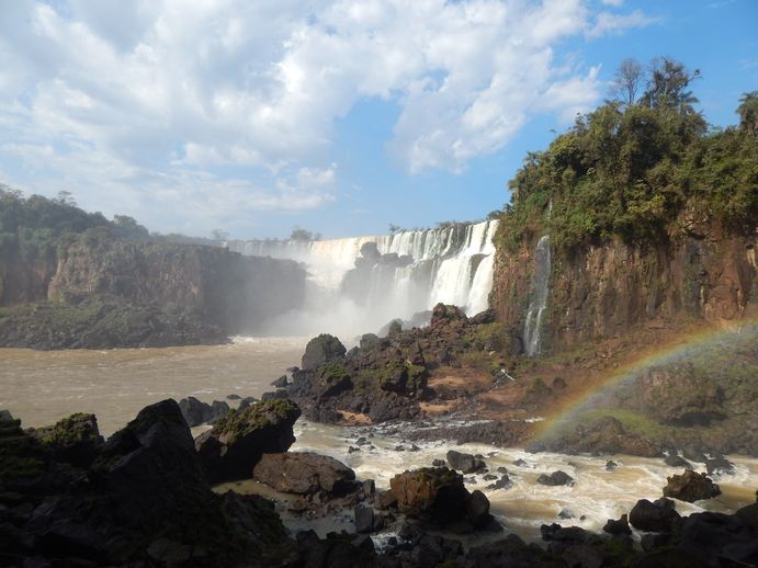 Am Nachmittag verlassen wir den Park. Jochen will heute unbedingt noch auf die brasilianische Seite, also fahren wir zum argentinischen Puerto Iguazu. Dort ist die Grenze. Man fährt über eine Brücke und ist in Brasilien, in Foz de Iguazu. Dort kann man sich die Wasserfälle dann in einem ähnlichen Touristenandrang noch mal von der brasilianischen Seite aus ansehen. Wir beschließen, darauf zu verzichten, so sehr viel anders können die gleichen Wasserfälle von der anderen Seite wahrscheinlich nicht sein und nass waren wir ja schon.
