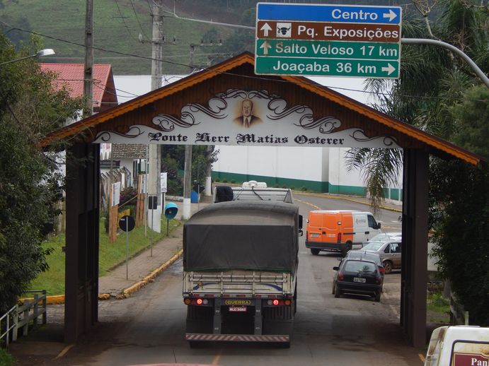 Wir schlafen gar nicht schlecht auf dem TIR-Autohof. Nach dem Frühstück setzen wir unsere Fahr fort Richtung Treze Tilias (dreizehn Linden). Wir sind im europäischen Teil Brasiliens, dominiert von Einflüssen der vielen Einwanderer in diesem Landesteil. Treze Tilias ist ein „tiroler“ Dorf, das aufgrund seiner Bauwerke als einmalig in Brasilien gilt. Wir versuchen möglichst außerhalb der starke befahrenen Straßen zu bleiben, nehmen also auch mal eine gelbe oder weiße Straße. Entsprechend landen wir auch mal auf einer schlechten Piste, aber immer noch besser, als auf den roten Straßen ständig hinter irgendwelchen LKW's herzukriechen.