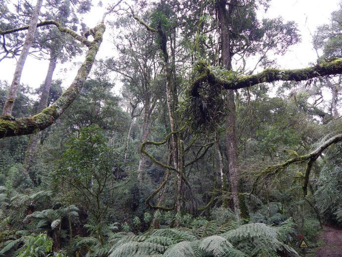 Treze Tilias hat uns gut gefallen, weiter geht es nach Blumenau. Ebenfalls eine deutschstämmige Stadt aber mit 38000 Einwohnern deutlich größer als Treze Tilias. Dort solle es auch einen Campingplatz geben. Um zum Camping zu gelangen, müssen wir durch Blumenau durch, der Platz soll ca. 15km außerhalb in einem Naturschutzgebiet liegen. Die Straße soll auf den letzten 4km zu Piste werden. Blumenau gefällt uns gut. Sehr bunt, sehr aufgeräumt. Aber dafür haben wir im Moment keinen Blick. Die Sonne geht schon wieder unter und Campingplatzsuche im Dunkeln und auf Piste ist immer so eine Sache. Wir finden die Straße ins Naturschutzgebiet auf Anhieb. Es wird dunkel. Die Straße – anfangs beleuchtet - windet sich einen Berg hoch, wird zur Piste und....wir sind im düsteren, einsamen Urwald. Von einem Campingplatz weit und breit keine Spur. Die Piste windet sich weiter hoch, wird sehr schmal und wir sind mitten im Nichts. Zwar scheint es hier sehr schön zu sein, zumindest meint man das im Autoscheinwerferlicht zu erkennen, aber es gibt keine Möglichkeit, sich irgendwo hinzustellen. Rechts der schmalen Piste: Abgrund zum Fluss. Links der Piste: Felsen und Urwald. Also weiter...wir landen schließlich in einem kleinen Dorf. Es sind sogar zwei Pousadas ausgeschildert. Wir folgen einer Ausschilderung und landen auf einer Baustelle....dort soll also erst noch eine Pousada entstehen. Also folgen wir der zweiten Ausschilderung. Dort gibt es tatsächlich eine Pousada! Und eine sehr hübsche sogar, mit Teich und Garten und Blümchen. Aber leider ist kein Mensch zu sehen. Wir klopfen und rufen und nichts. Also stellen wir uns einfach auf die hübsche Rasenfläche vor der Pousada. Irgendwann kommt dann auch ein netter Mann verschlafen in Schlappen und Jogginghose angeschlurft und meint, wir können ruhig hier campen, kein Problem. Also machen wir es uns gemütlich zur Nacht. Die Nacht ist wunderbar ruhig in diesem Dörfchen, direkt am Urwald. Nur die Geräusche des Urwaldes begleiten uns in den Schlaf.
