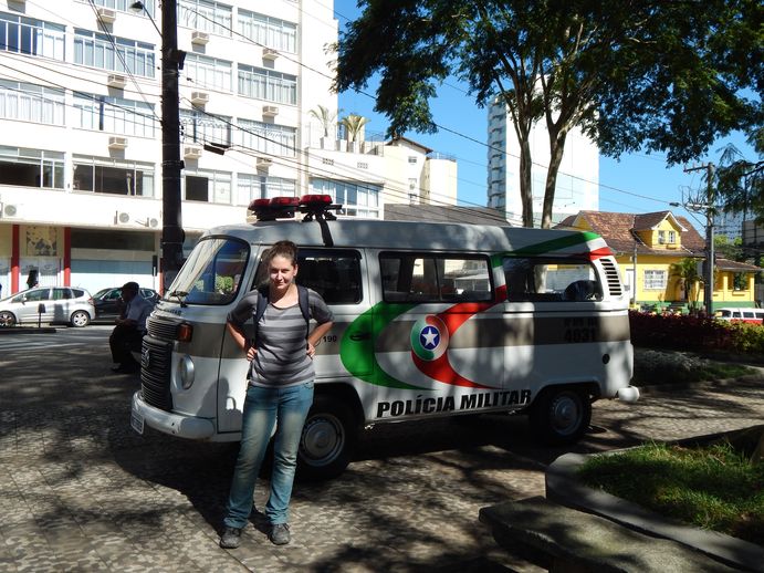 Am nächsten Morgen fahren wir die 15km zurück nach Blumenau und stellen fest, dass der Weg dorthin wirklich toll ist. Die Straße war nur gestern im Dunkeln eher unübersichtlich. Wir fahren durch Wald auf der einen Seite und einem reißenden Fluss auf der anderen Seite. Sehr hübsch. Wir entdecken auf dem Weg sogar den Campingplatz, den wir eigentlich gesucht haben. Allerdings war der gestern Abend offenbar nicht beleuchtet und hat geschlossen. Egal, wir haben ja einen schönen Übernachtungsplatz gehabt.
