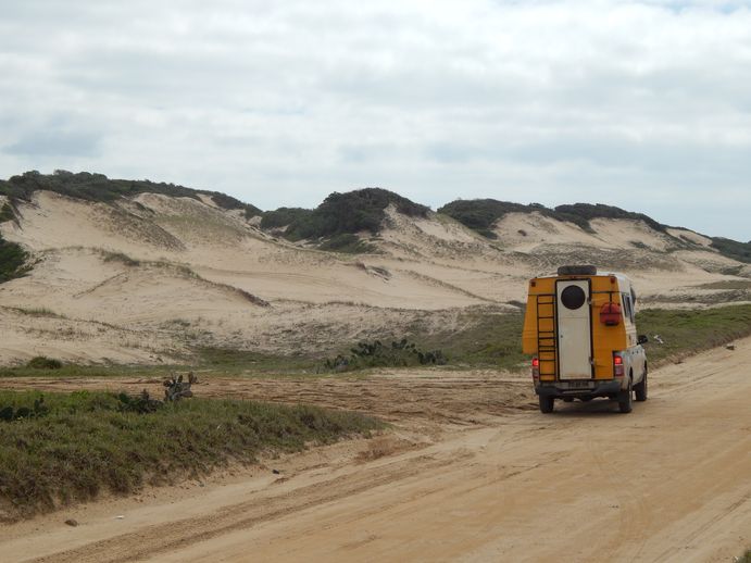 Also wieder raus aus dem Dorf. Wir nehmen eine Piste an der Küste entlang - und oh Wunder- eine kilometerlange, völlig einsame Piste am weißen Strand, wo man sich herrlich hinstellen kann. So finden wir ein wunderbares Plätzchen zum Übernachten mit Gratis-Wellenrauschen direkt am Strand. Jochen geht sogar baden. Mit ist das Wasser dann doch zu kalt....
