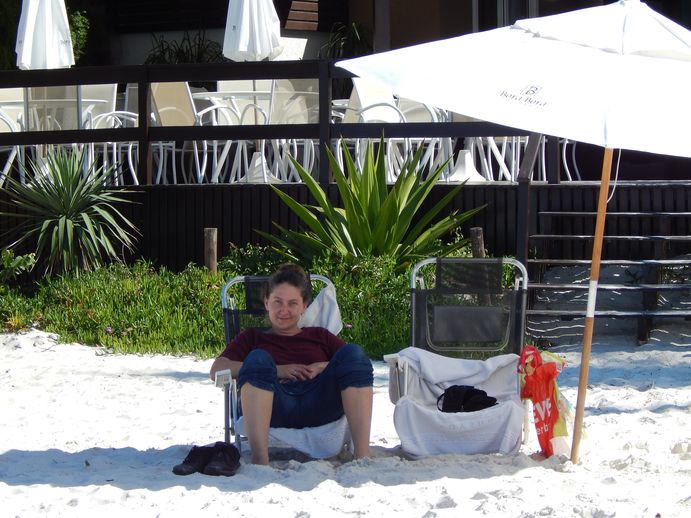 Wir verdödeln den Tag in Bombinias. Da wir recht schnell unterwegs waren, haben wir uns heute „frei genommen“ und wollen mal gar nichts machen. Wir lesen, schlafen und lassen uns am Nachmittag ein paar Liegestühle und einen Sonnenschirm an unserem Privatstrand aufbauen. Kaum eine andere Menschenseele ist außer uns am Strand. Wir baden, dösen in der Sonne herum und lassen es uns gut gehen...