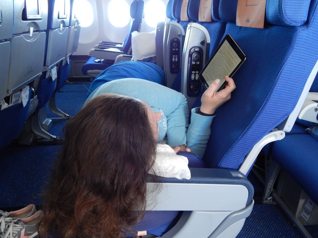 Unser Rückflug ist wieder angenehm leer – Barbara darf sich langmachen. Das Bordprogramm bietet einen ausgezeichneten Spanischen Film – Jochen ist begeistert.