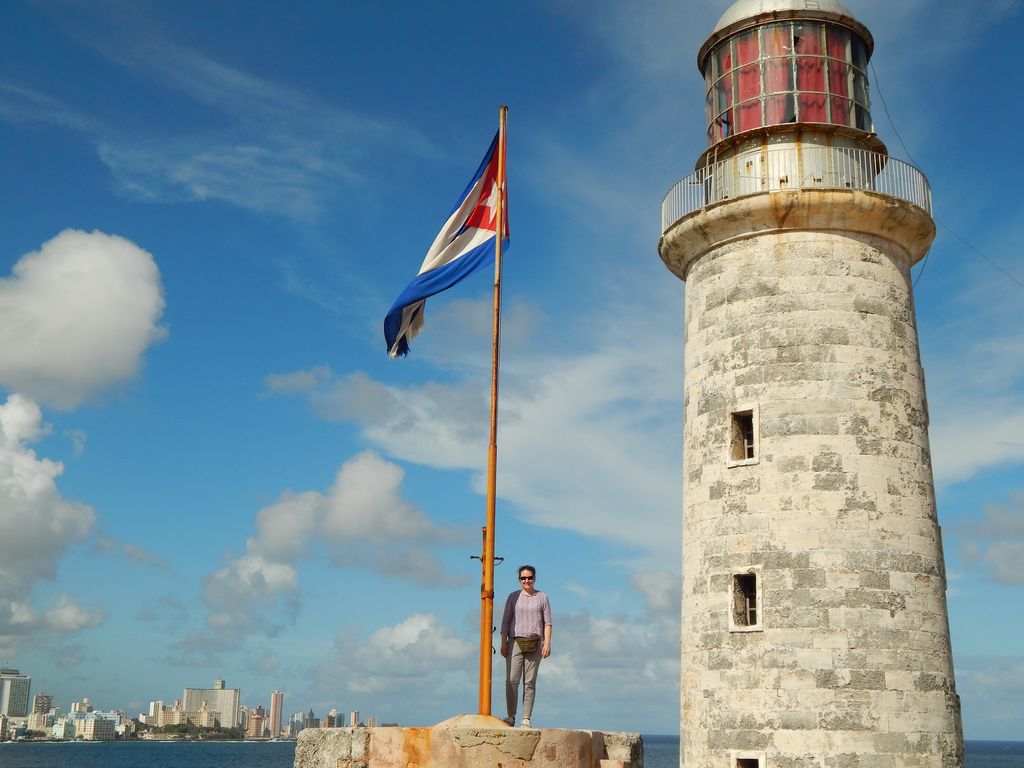 Wir besichtigen den Aussenbereich, bestaunen die riesigen Wellen, die sich an den Felsen brechen und geniessen den atemberaubenden Ausblick auf die Skyline von Havanna. Von hier aus hat man den Überblick über große Teile des Malecón und die quirlige Stadt. Am Kreuzfahrt-Terminal hat ein riesiges Schiff festgemacht – die Festung ist ein Logenplatz. Einen Moment müssen wir noch in einem Gewölbe warten, der Kassierer ist noch nicht soweit. Ein extrem lauter Chinese fällt zusätzlich unangenehm auf, weil er sich im engen Festungs-Gewölbe unter all den wartenden Menschen eine Zigarre anzündet und die Menge spontan zum Husten bringt.