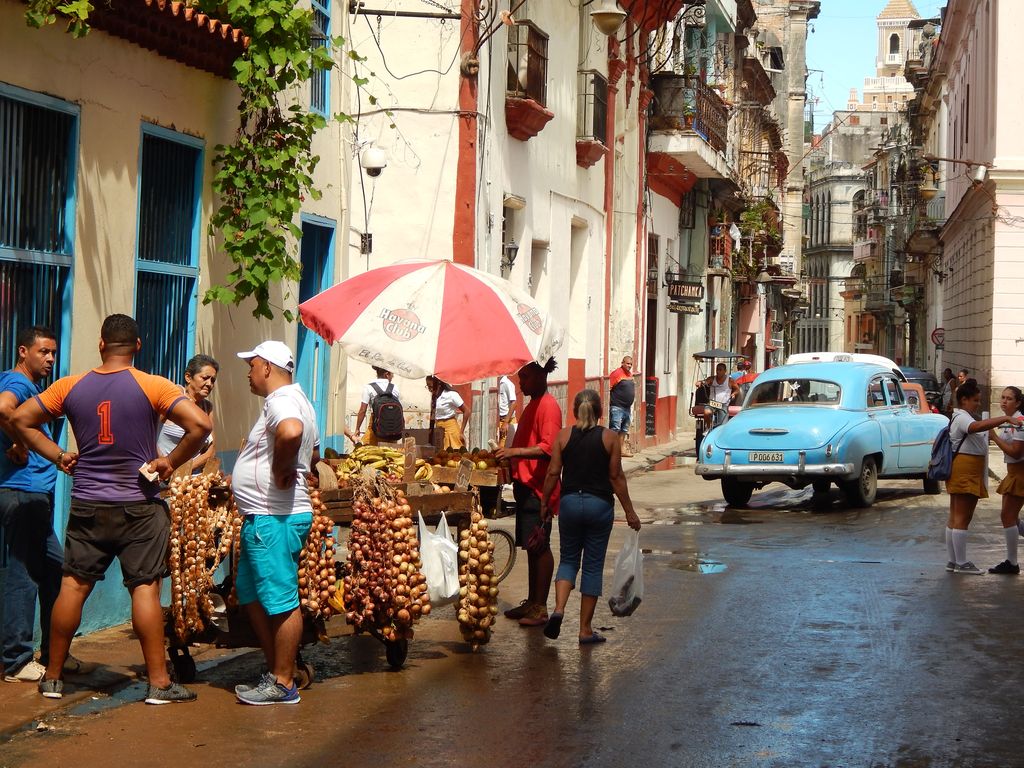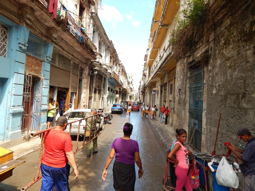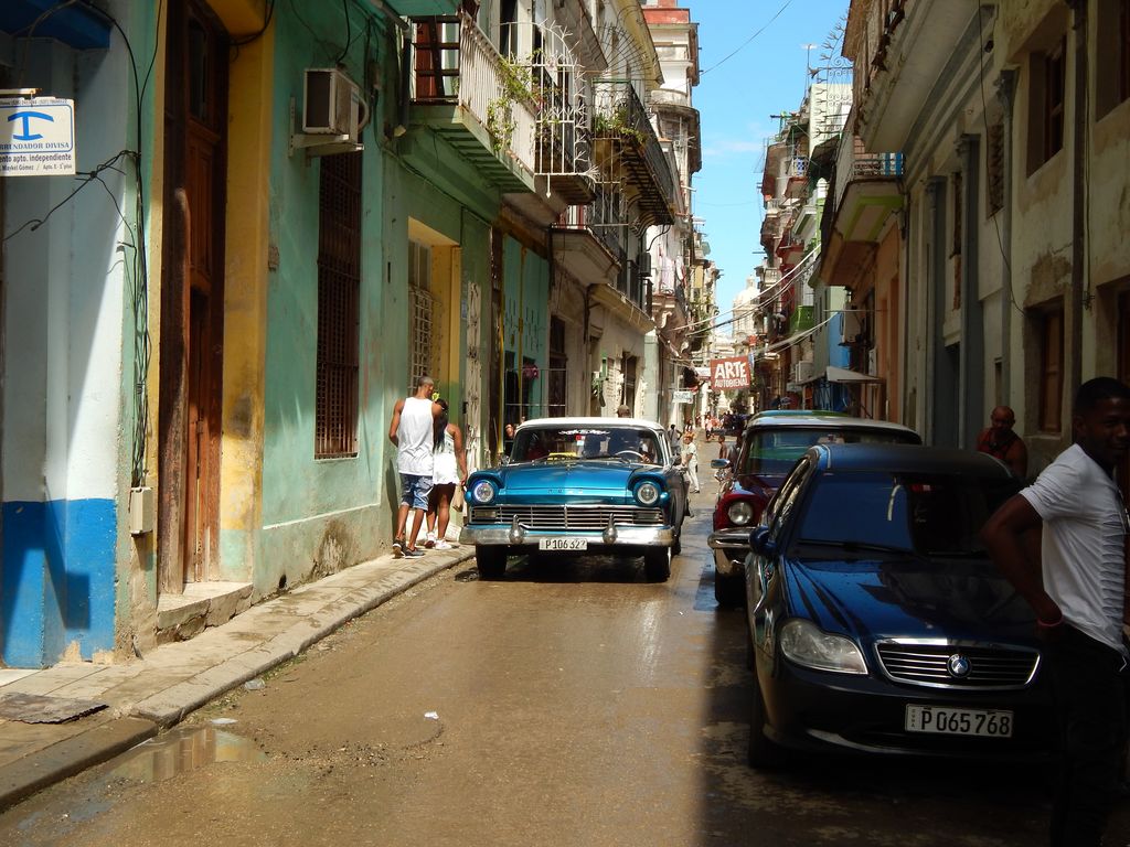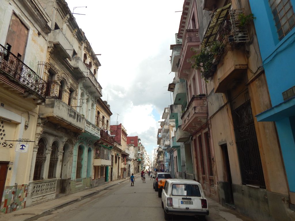 Von Sturm- oder Wasserschäden ist auch hier kaum etwas zu sehen. Respekt – die müssen hier ganz schnell aufgeräumt haben. Das koloniale Gebäude wirkt von aussen etwas heruntergekommen – so wie alle Gebäude in diesem Stadtteil. Aber gerade dieser marode Charme der alten Gebäude hat es uns angetan – es dürfte ein Teil dessen sein, was Havanna ausmacht. Die Strasse ist alles andere als steril – vor den Häusern sitzen Menschen und unterhalten sich angeregt, Verkäufer und Bicycle-Taxis rufen Ihre Werbebotschaften, Kinder spielen Fußball und gelegentlich fährt ein Amerikanischer Oldtimer aus den späten 50er-Jahren durch die engen Gassen. Untermalt wird das ganze von den Bässen des Reggaeton, der von irgendwo aus einem Ghettoblaster tönt. Und niemand käme auf die Idee, sich daran zu stören.