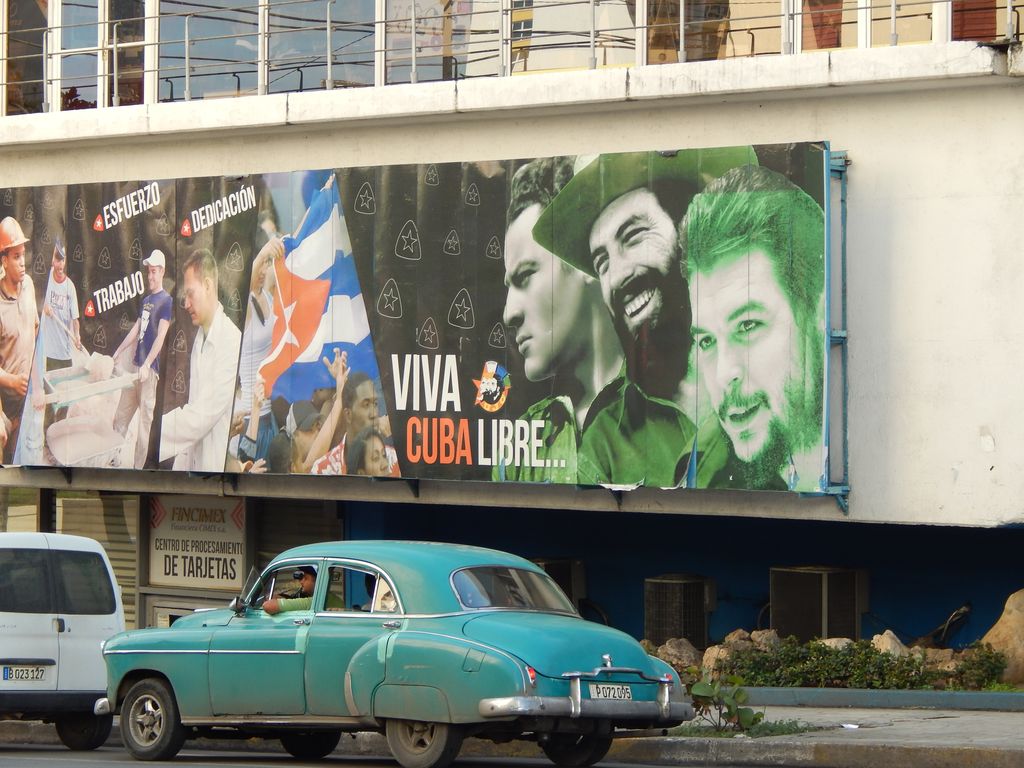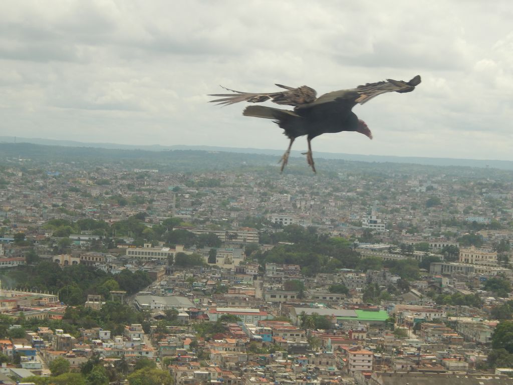 Na toll – es wird wohl gerade renoviert. Wir fahren also direkt zurück in die Stadt. Wenigstens war die Strecke ganz nett, eine schöne Ausfahrt. Am Nachmittag besichtigen wir den Stadteil Vedado, sehen uns den Plaza de la Revolución an und nehmen den Fahrstuhl zur Aussichtsplattform des noch vom Diktator Batista errichteten José-Martí-Denkmals. Vom dem 109m hohen Turm hat man einen unglaublichen Ausblick auf die Stadt. Geier nutzen geschickt die Thermiken, landen auf den Mauervorsprügen in schwindelerregender Höhe und wundern sich über die Touristen auf der anderen Seite der Glasscheibe.