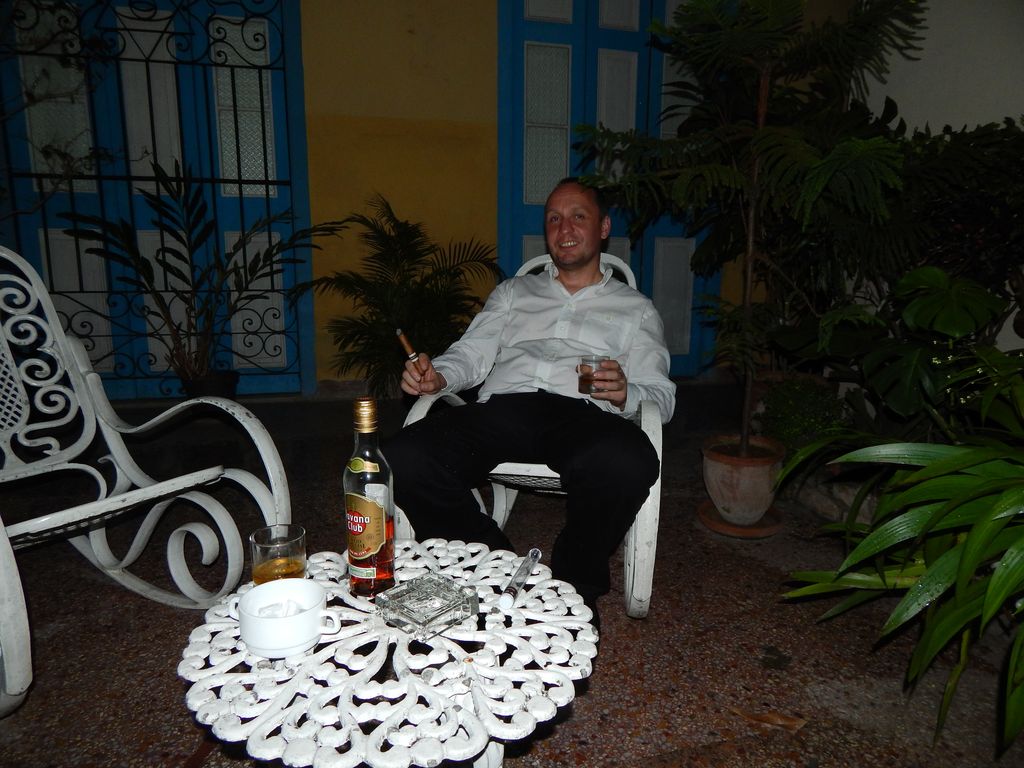 Am Abend geht es nochmal in die Stadt. Promt lassen wir uns von einem der zahlreichen Schlepper anquatschen, der uns ein „Paladar“ empfielt. Ein Paladar ist ein privates Restaurant und immer ein Erlebnis – manchmal ist es einfach nur ein umgebautes Wohnzimmer innerhalb einer Wohnung. „Paladar“ heisst übersetzt „Gaumen“ und dieser Name ist der oft kreativen Küche der Besitzer geschuldet. Einige dieser „Paladares“ zahlen Provison an Schlepper, die für ein paar CUC versuchen, möglichst viele Gäste „zu begeistern“. Die Provison wird natürlich ins Essen eingepreist. Egal, der Schlepper ist nett und wir laden ihn zum Essen ein. Jochen quatscht uns - wie so oft – fest und den Schlepper voll. Es wird ein netter Abend.