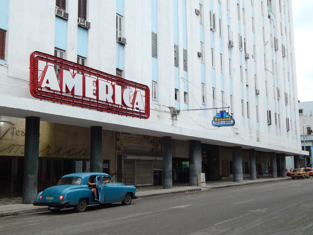 Etwas wehmutig blickt Jochen auf das große Kino „Yara“ in „La Rampa“. Tagelang haben wir versucht, einen Spielplan für kubanische oder lateinamerikanische Filme aufzutreiben. Unser Hotelbesitzer hat alles versucht, konnte aber nur internationale Produktionen finden. Immer wenn wir nachfragen wollten, hatte die Kinokasse zu und der Aushang war eher spärlich. Wir haben uns sogar eine Zeitung gekauft – leider hatte die auch kein Kinoprogramm. Naja, man kann nicht alles haben.