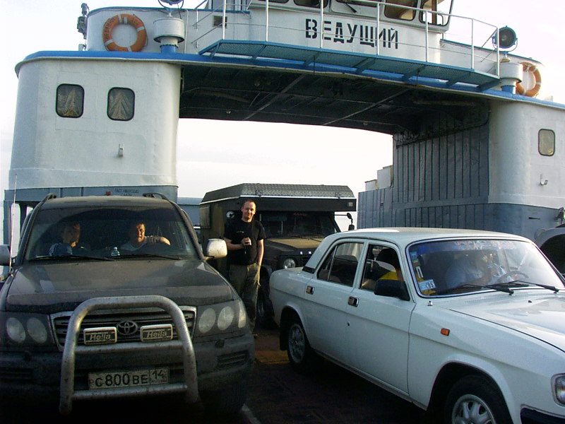18.06.05 Wir schlafen gut in unserer Absteige, genießen zum Frühstück jeder 3 Spiegeleier, Knoblauchwurst, Schinken und Kassler – jaja, diese Sprachprobleme – und fahren weiter nach Samara. Wir sind gut gelaunt und kommen gut voran. Lediglich die Landschaft ist wenig abwechslungsreich. Viel, viel, viel plane Fläche mit riesigen Getreidefeldern. Die Polizeikontrollen sind ebenfalls wenig abwechslungsreich, wir werden wirklich bei JEDER heraus gewunken. Teilweise liegen diese Kontrollen nur 200m auseinander. Wir halten an, halten dem Herrn Wachtmeister schon ungefragt den Stapel Papiere (Pässe, internationale Führerscheine, Fahrzeugschein, Versicherung, Zollerklärung) entgegen, sagen „Wir kommen aus Kasachstan und fahren nach Hause nach Deutschland und im Auto haben wir nur Campingutensilien“ und warten auf weitere Fragen. Einige wollen einfach mal ins Auto reingucken, andere wollen wissen, was für ein Auto das ist und wieder andere wollen sich einfach nur mal ein wenig unterhalten. Die Polizisten sind wirklich durchweg extrem freundlich und nett, aber es nervt trotzdem kolossal. Nur einmal ist einer nicht so nett, als ich im Überholverbot überhole und Herr Polizist 100 Dollar ohne Quittung von uns haben will. Wir stellen uns total doof und machen auf „Wieso?? Was haben wir den getan?? Und was ist „STRAF!!“ ? Das verstehen wir nicht! Und überhaupt, wieso Dollar, wir sind hier in Russland! Rubel! Wir verstehen sowieso überhaupt rein gar nix!!“ Als wir vehement darauf bestehen, daß wir nichts getan haben und für unsere Strafe unbedingt eine Quittung haben wollen, kommen wir mit umgerechnet 14Euro – ohne Quittung – und einigen bösen Blicken seitens Herrn Polizisten davon... Wir können Saratov - den Moloch – zum Glück auf eine Umgehungsstraße aus dem Wege gehen und fahren weiter Richtung Toliatti. Dort möchten wir die Volga überqueren. Möchten...aber irgendwas ist ja immer...am Ortseingang erzählt uns die obligatorische Ortseingangs-Polizeikontrolle (die uns natürlich raus gewunken hat), daß die Brücke über die Volga leider „unsicher“ sei. Ein Überqueren ist nicht erlaubt! Einsturzgefährdet??? Man sagt uns, wir müssten über Samara nach Süden, nach Saratov fahren und dann wieder hoch...Mal eben so...ca. 800km Umweg...klar, kein Problem...“DAS KANN DOCH NICHT ANGEHEN!!!“ regt sich Jochen auf. „SIND DIE DENN NICHT GANZ DICHT HIER???“. Wir fahren doch jetzt nicht nach Saratov!! „Oder Sie nehmen die Fähre, die fährt hier gleich um die Ecke – nur 20km von hier“ sagt der Polizist...Witzig! Der Fährableger ist relativ schnell gefunden, kostet umgerechnet ca. 8 Euro. Auf dem Fährgelände nervt mich ein russischer Nazi, ruft mir „Heil Hitler!“ hinterher und zeigt mir stolz ein tätowiertes Hakenkreuz auf seiner Wade. Ich drehe mich kommentarlos weg. Nazis scheint es hier ziemlich viele zu geben, das ist uns schon vorher aufgefallen. Wir haben noch Zeit für einen Döner und setzten dann an der breitesten Stelle der Volga (die spinnen, die Russen!) unser Engelchen in ca. einstündiger Fahrt auf einer uralten Fähre über den Fluß. |