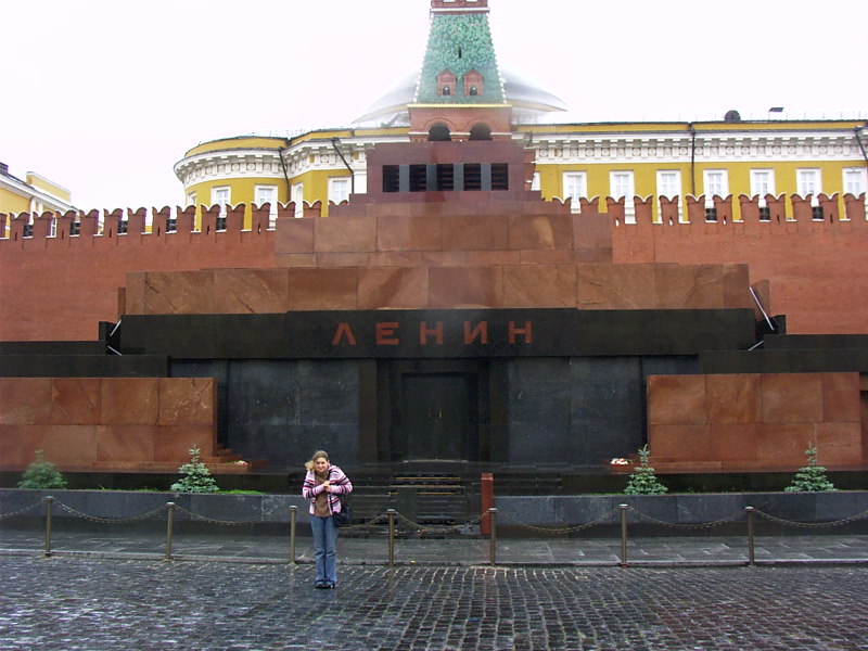 21.06.05 Heute haben wir einen Sightseeing-Tag in Moskau eingelegt. Mit der Metro in die Stadt und auf zum Lenin Mausoleum. Die lange Warteschlange haben wir durch anmieten einer privaten Führerin geschickt umgehen können, die Frau war Ihr Geld wirklich wert – nicht nur wegen der Umgehung der Schlange, auch wegen der detailreichen Hintergrundinformationen. Wir sehen die Gräber von Stalin, Breschnev und Andropov sowie das Urnengrab von Juri Gagarin, dem Weltraumpionier. Schließlich gelangen wir in das Lenin-Mausoleum. Ist schon beeindruckend, so „Auge in Auge“ mit DEM Lenin. Während wir an der Leiche vorbeigehen, ist es streng verboten zu sprechen, stehenzubleiben oder die Hände in die Hosentaschen zu stecken. Unsere Fremdenführerin erzählt uns, dass unter dem Grab eigens ein Labor eingerichtet ist, das sich mit der Konservierung des Leichnams beschäftigt. Abends wird der Glassarkophag in eben dieses Labor hinabgefahren. Irre! |