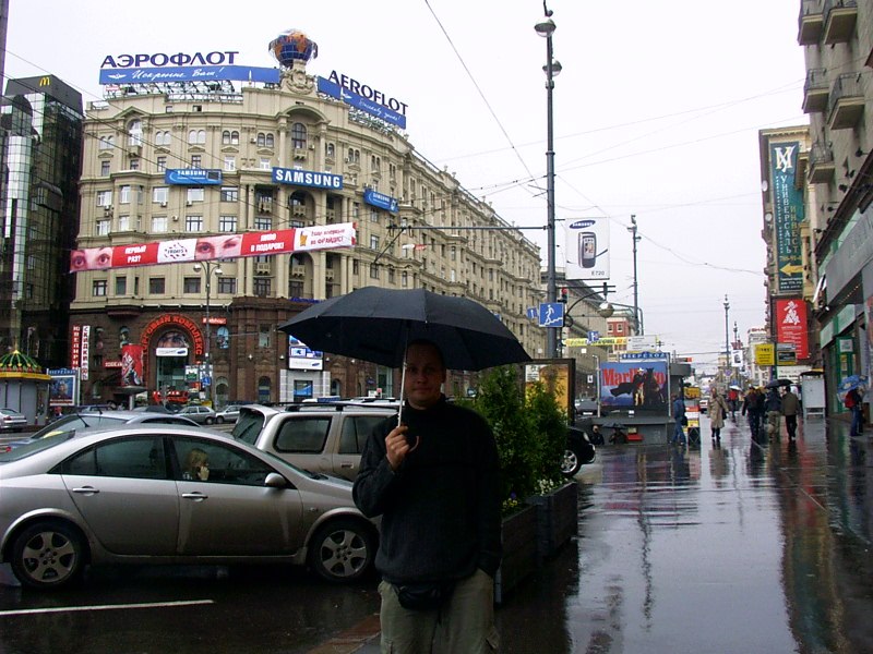 20.05.05 Wir fahren die letzten Kilometer nach Moskau. Moskau hat 3 Ring-Umgehungsstraßen und kilometerlange Vororte. Der Plan ist, uns in einem Vorort ein Hotel zu suchen, Engelchen stehen zu lassen und dann mit Öffis in die Stadt zu fahren. Auf gar keinen Fall wollen wir mit der Kiste in die City, Moskau soll verkehrstechnisch schlimmer sein, als alles, was wir bisher erlebt haben. Wir sind auch fest davon überzeugt, dass in einer internationalen Metropole wir Moskau Hotels auch als solche zu erkennen sind, wahrscheinlich sogar ausgeschildert? PUSTEKUCHEN! Nicht ein einziges Schild, was nicht nur auf kyrillisch beschriftet ist, NICHT EINS!! Wir fahren stur auf der Hauptstraße, welche aus südöstlicher Richtung genau ins Zentrum Moskaus trifft. Alle Straßen aus ganz Rußland treffen sternförmig in Moskau zusammen. Wir fahren durch die Vororte, suchen und suchen, fahnden hektisch nach Schildern, die auf ein Hotel hinweisen, biegen genau 2mal ab und schwupps, stehen wir mitten in einem monströsen Stau genau vorm Kreml. So was nenne ich wirklich zielsicheres Verfahren. Und so schnell wir in diesen Schlamassel geraten sind kommen wir natürlich nicht wieder raus. Das ganze wird extrem unübersichtlich, weil man nicht einfach abbiegen kann...man kann auch nicht eine ungefähre Richtung einschlagen...irgendwas ist in der Stadt los, wir werden von mehreren dunklen, wichtig aussehenden Limousinen mit Blaulicht überholt, welche noch wichtiger aussehende, noch dunklere Limousinen mit verdunkelten Fenstern begleiten. Macht Putin eine Ausfahrt??? Wie dem auch sei, zu diesem Zwecke sind mehrere große Straßen gesperrt, zumindest jeweils in eine Richtung. Überall stehen Horden von Polizisten, die irgendwie den Verkehr regeln, indem sie 10-spurige Straßen kurzfristig zu Einbahnstraßen machen, welche dann 20-spurig genutzt werden, während der Gegenverkehr warten muß (!). Da steht man dann eine halbe Stunde in einer riesigen Blechlawine, ohne daß irgendwas passiert, plötzlich wird die Straße freigegeben, alles jagt los, aber eben auch nur in eine bestimmte Richtung. Wie dem auch sei, wir schaffen es nach diversen Kreml-Umrundungen nach 2 Stunden dann irgendwie aus dem Zentrum raus in einen Vorort und verwenden den Taxi-Trick (in Moskau sehr schwierig, weil es hier so gut wie keine Taxis gibt, zumindest nicht überall) und werden zu einem Mittelklasse-Hotel ca. 5km vom Zentrum entfernt direkt bei einer Metro-Station gebracht. Nur die Rezeption macht gerade Mittagspause, also gehen wir erst mal was Essen. Wir nehmen ein Zimmer für zwei Tage und fahren nach kurzer Ruhepause mit der Metro in die Stadt. Wir steigen relativ nah am Kreml aus und machen uns erst mal einen Überblick, kaufen einen Bildband über Moskau und gehen bei strömendem Regen etwas spazieren. Auf dem Rückweg wollen wir noch mal kurz ein wenig einkaufen. Duschgel, Schokolade und Bier aus dem Supermarkt. Gar nicht so einfach hier... Am Eingang zum Supermarkt werden einem erst mal alle Taschen, die über die Größe eines Portemonnaies hinausgehen in Plastiktüten verpackt und dann mit einem Klebeband „versiegelt“...damit man auch ja nichts in den Taschen verschwinden läßt. Der Weg zur Bierabteilung ist durch mehrere große Kühlschränke verbaut. Auf unsere Nachfrage heißt es „njet raboti“ – die Bierabteilung arbeitet heute nicht....na gut, dann eben Bier kaufen am Kiosk, denken wir uns. An einem Kiosk vorm Hotel sage ich „dwa ´baltika´, pajalsta“ (Zwei ´Baltika´, bitte) und deute auf die ca. 20 Baltika-Bier, welche im Regal stehen. „Pivo njet“, sagt der Mann...Wie Pivo njet, da stehen doch 20??? Nein, gibt es nicht, beharrt der Mann, wirft noch eine Erklärung hinterher, die wir nicht verstehen, und schon werden wir von nächsten aus der Schlange hinter uns zur Seite gedrängt. Warum wir kein Bier bekommen haben, wissen wir nicht...weil Montag ist? Wie der russische Tag des Nicht-Alkohol-Trinkens ist? Weil der Mann keine Konzession zum Bierverkaufen hat? Weil wir Ausländer sind? Oder weil einfach immer nur irgendetwas ist? |