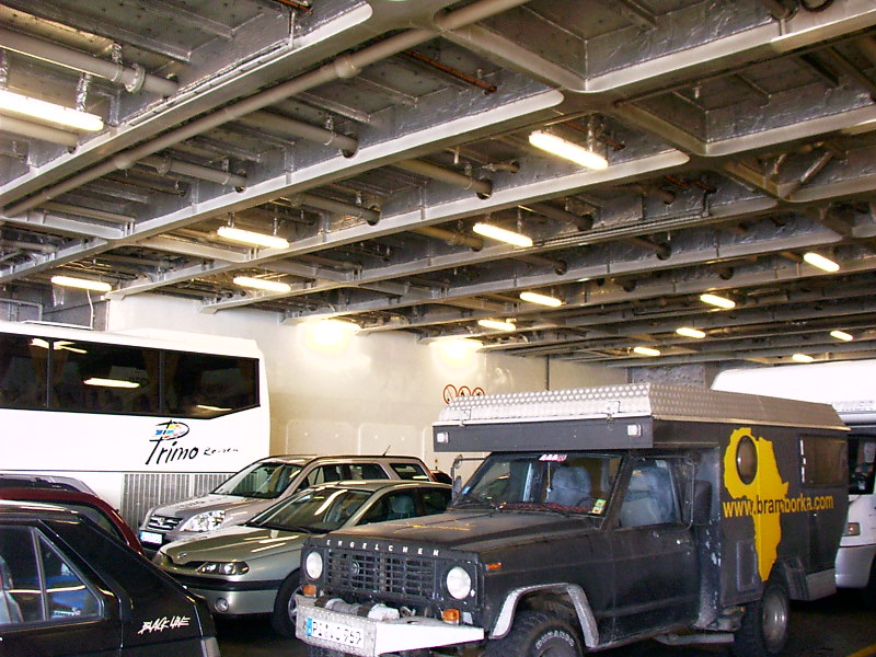 23.07.05 Der Plan: wir versuchen es mal in Litauen. Da hier die Dimensionen wesentlich überschaubarer als in Russland oder Kasachstan sind, erreichen wir bereits am Nachmittag Kleipeda. Wir haben Glück – ein Schiff nach Kiel fährt bereits am Abend, und wir und unser Auto checken ein. Die Zeit an Bord lassen wir uns von einem gruseligen Alleinunterhalter mit einem Schifferklavier vertreiben und nach einer geruhsamen Nacht in einer der Innenkabinen kommen wir am nächsten Tag ausgeruht in Kiel an. |